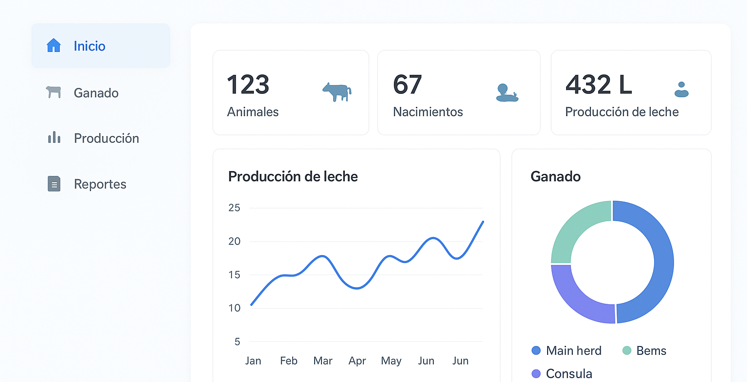 Sistema integral para administrar tu finca: control de ganado, producción de leche, nacimientos y mucho más.